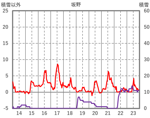 | 日 | 時 | 気温 | 降水 | 風向/風速 | 日照 | 積雪 | 降雪 |