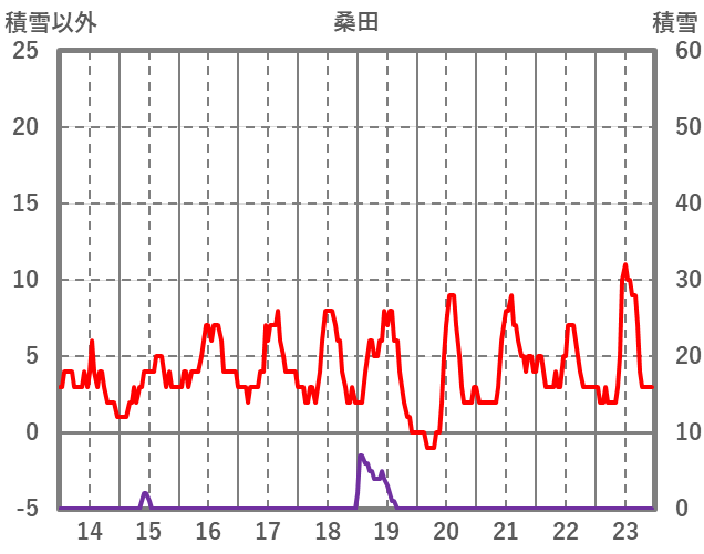 | 日 | 時 | 気温 | 降水 | 風向/風速 | 日照 | 積雪 | 降雪 |