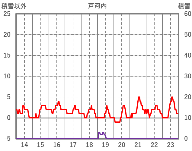 | 日 | 時 | 気温 | 降水 | 風向/風速 | 日照 | 積雪 | 降雪 |