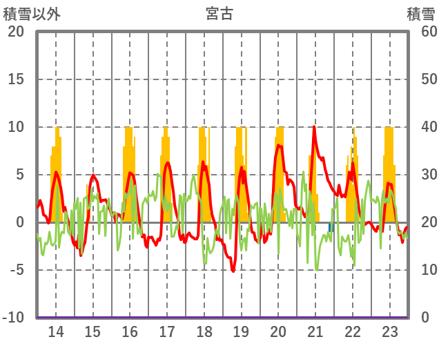 | 日 | 時 | 気温 | 降水 | 風向/風速 | 日照 | 積雪 | 降雪 |