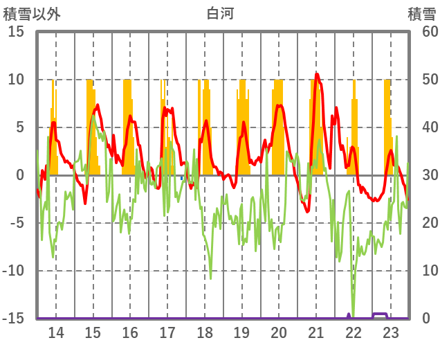 | 日 | 時 | 気温 | 降水 | 風向/風速 | 日照 | 積雪 | 降雪 |
