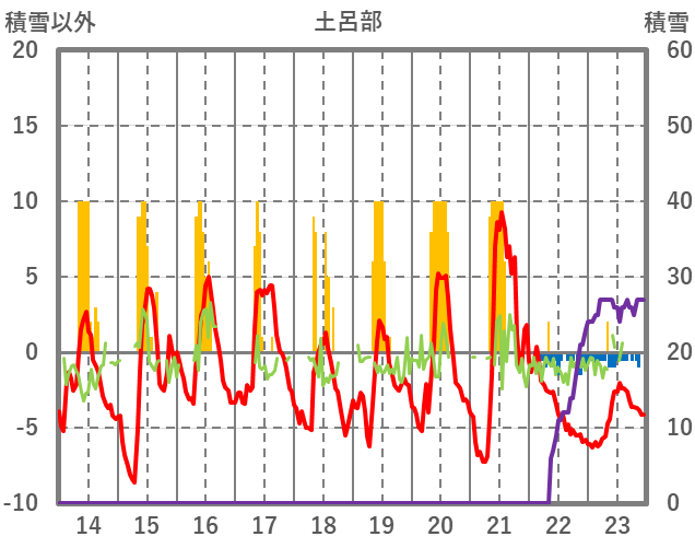 | 日 | 時 | 気温 | 降水 | 風向/風速 | 日照 | 積雪 | 降雪 |