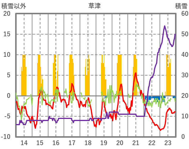 | 日 | 時 | 気温 | 降水 | 風向/風速 | 日照 | 積雪 | 降雪 |