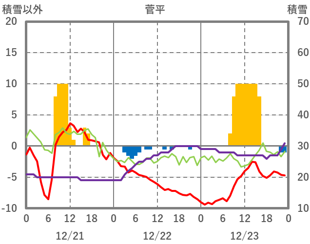 | 日 | 時 | 気温 | 降水 | 風向/風速 | 日照 | 積雪 | 降雪 |