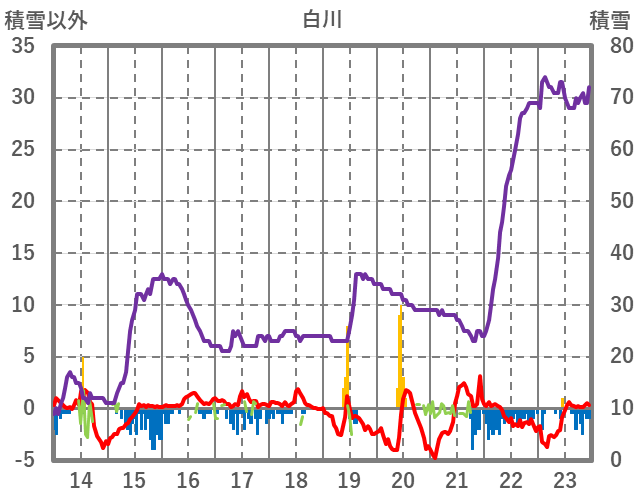 | 日 | 時 | 気温 | 降水 | 風向/風速 | 日照 | 積雪 | 降雪 |