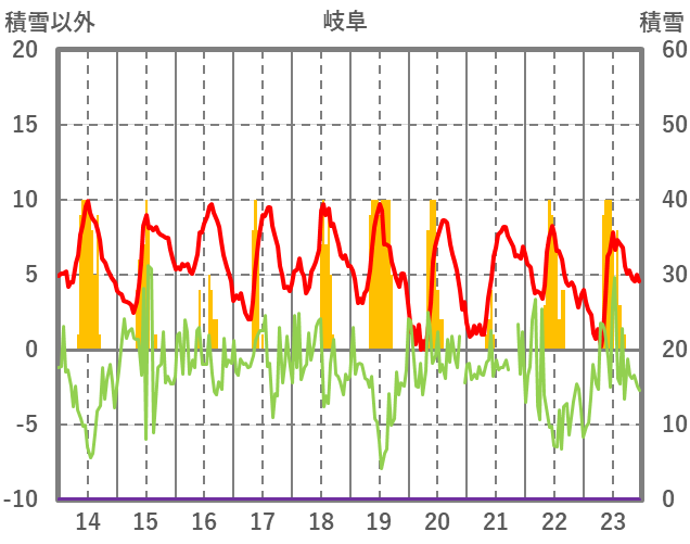 | 日 | 時 | 気温 | 降水 | 風向/風速 | 日照 | 積雪 | 降雪 |