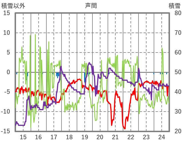 | 日 | 時 | 気温 | 降水 | 風向/風速 | 日照 | 積雪 | 降雪 |