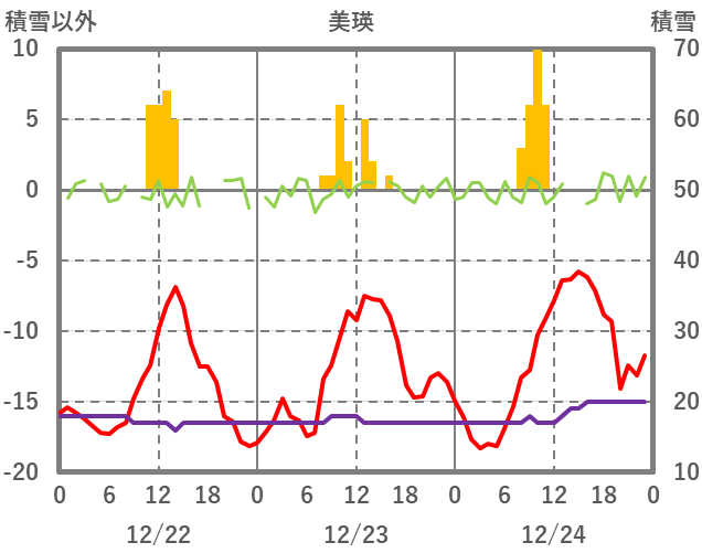 | 日 | 時 | 気温 | 降水 | 風向/風速 | 日照 | 積雪 | 降雪 |