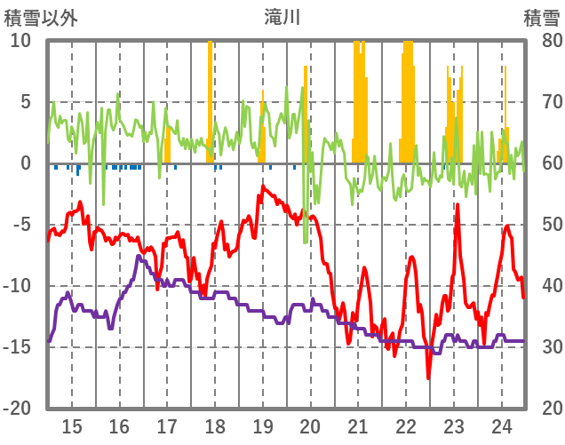 | 日 | 時 | 気温 | 降水 | 風向/風速 | 日照 | 積雪 | 降雪 |
