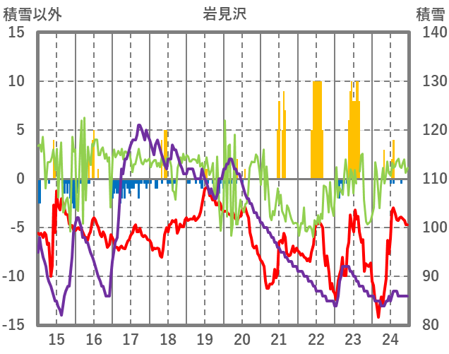 | 日 | 時 | 気温 | 降水 | 風向/風速 | 日照 | 積雪 | 降雪 |