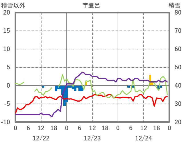 | 日 | 時 | 気温 | 降水 | 風向/風速 | 日照 | 積雪 | 降雪 |