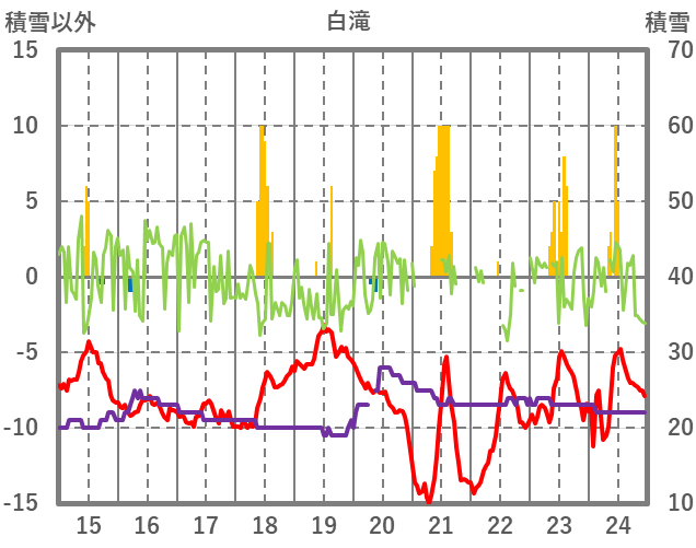 | 日 | 時 | 気温 | 降水 | 風向/風速 | 日照 | 積雪 | 降雪 |