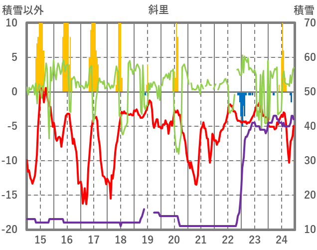 | 日 | 時 | 気温 | 降水 | 風向/風速 | 日照 | 積雪 | 降雪 |
