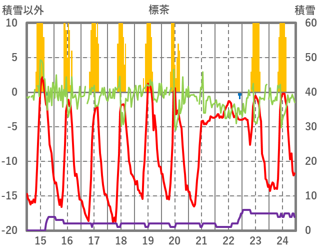 | 日 | 時 | 気温 | 降水 | 風向/風速 | 日照 | 積雪 | 降雪 |
