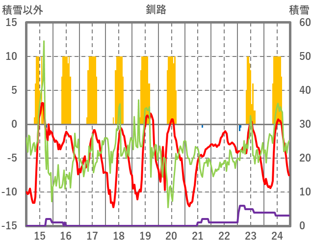 | 日 | 時 | 気温 | 降水 | 風向/風速 | 日照 | 積雪 | 降雪 |