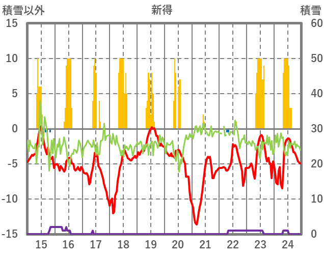 | 日 | 時 | 気温 | 降水 | 風向/風速 | 日照 | 積雪 | 降雪 |