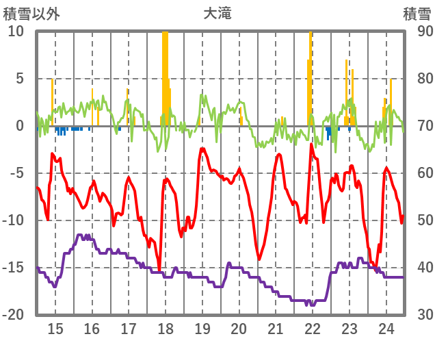 | 日 | 時 | 気温 | 降水 | 風向/風速 | 日照 | 積雪 | 降雪 |