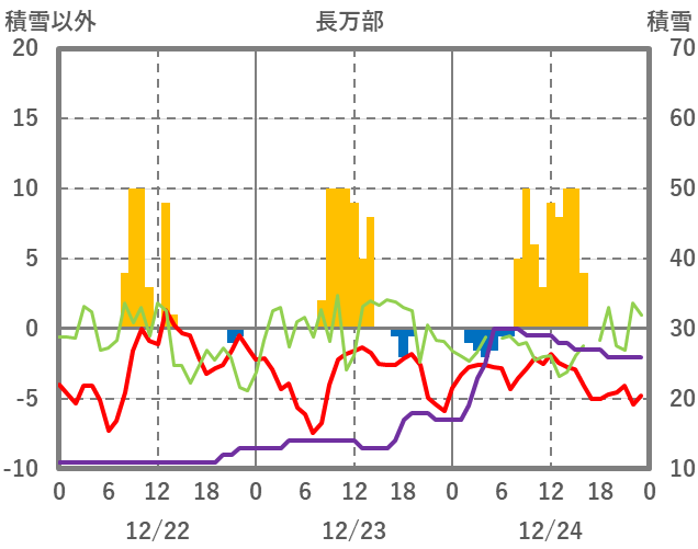| 日 | 時 | 気温 | 降水 | 風向/風速 | 日照 | 積雪 | 降雪 |