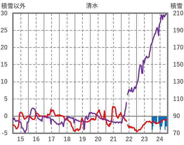 | 日 | 時 | 気温 | 降水 | 風向/風速 | 日照 | 積雪 | 降雪 |