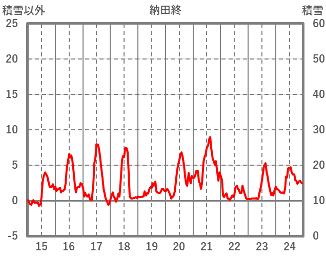 | 日 | 時 | 気温 | 降水 | 風向/風速 | 日照 | 積雪 | 降雪 |