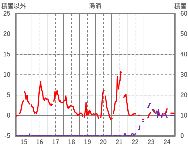 | 日 | 時 | 気温 | 降水 | 風向/風速 | 日照 | 積雪 | 降雪 |