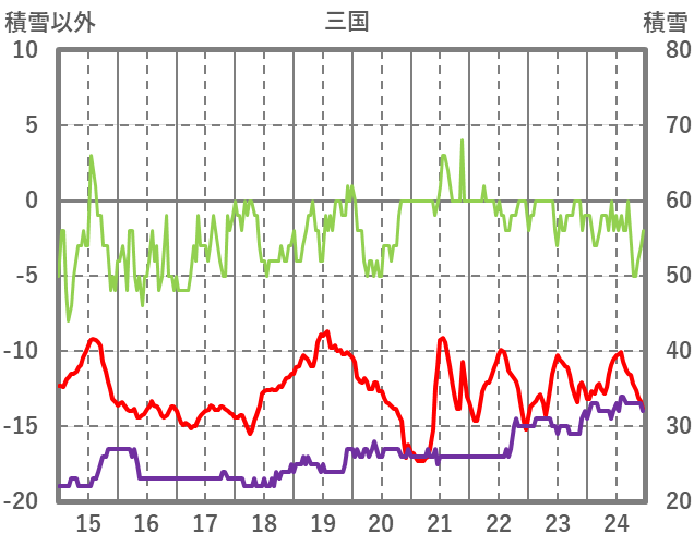 | 日 | 時 | 気温 | 降水 | 風向/風速 | 日照 | 積雪 | 降雪 |
