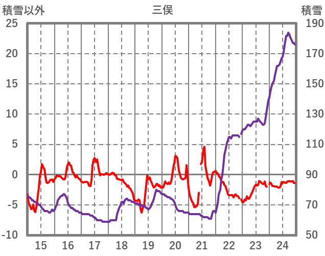 | 日 | 時 | 気温 | 降水 | 風向/風速 | 日照 | 積雪 | 降雪 |
