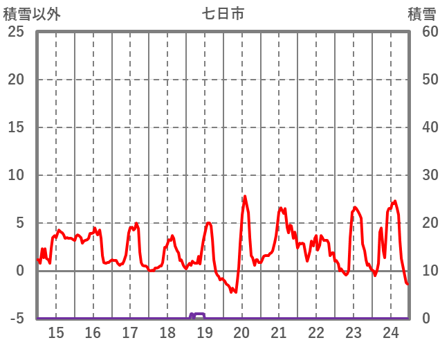 | 日 | 時 | 気温 | 降水 | 風向/風速 | 日照 | 積雪 | 降雪 |