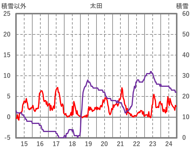 | 日 | 時 | 気温 | 降水 | 風向/風速 | 日照 | 積雪 | 降雪 |