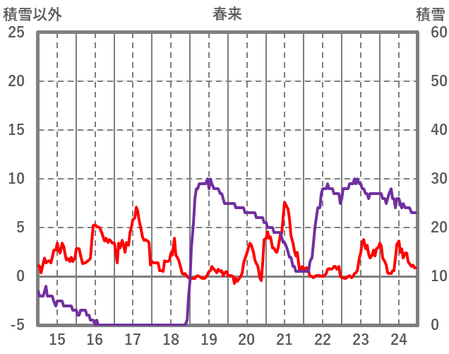 | 日 | 時 | 気温 | 降水 | 風向/風速 | 日照 | 積雪 | 降雪 |
