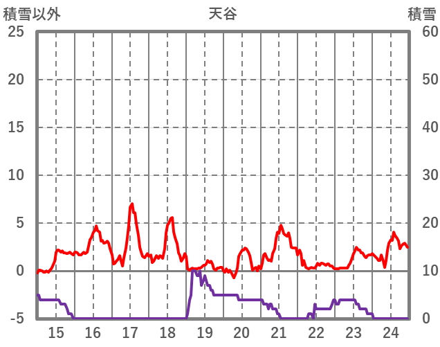 | 日 | 時 | 気温 | 降水 | 風向/風速 | 日照 | 積雪 | 降雪 |