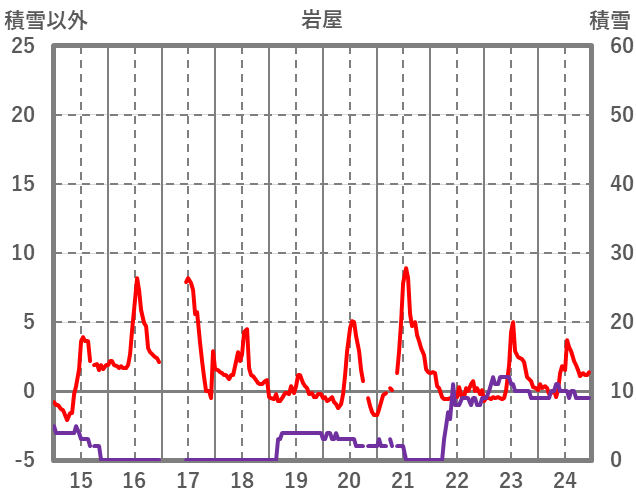 | 日 | 時 | 気温 | 降水 | 風向/風速 | 日照 | 積雪 | 降雪 |