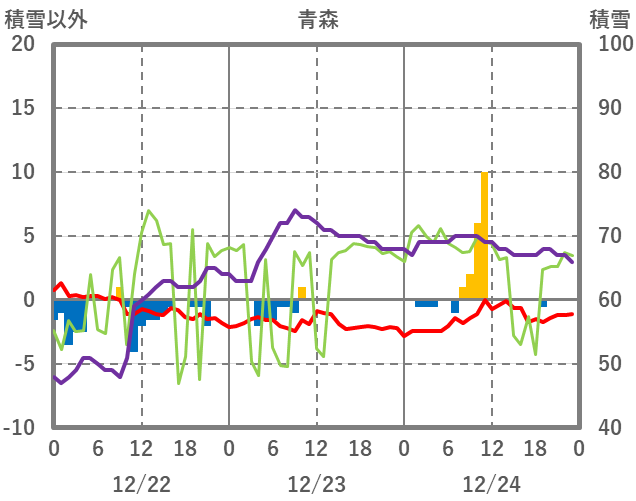 | 日 | 時 | 気温 | 降水 | 風向/風速 | 日照 | 積雪 | 降雪 |
