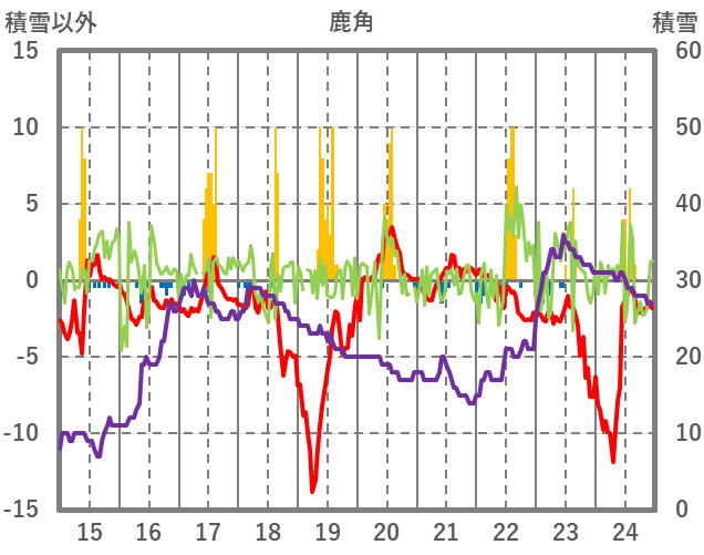 | 日 | 時 | 気温 | 降水 | 風向/風速 | 日照 | 積雪 | 降雪 |
