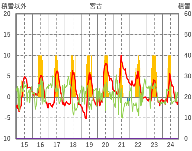 | 日 | 時 | 気温 | 降水 | 風向/風速 | 日照 | 積雪 | 降雪 |