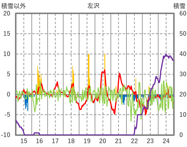 | 日 | 時 | 気温 | 降水 | 風向/風速 | 日照 | 積雪 | 降雪 |