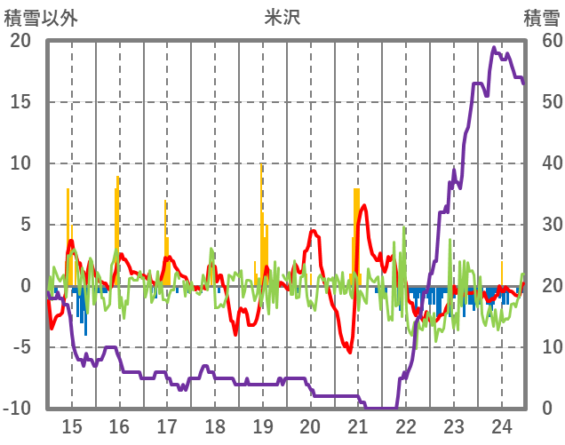 | 日 | 時 | 気温 | 降水 | 風向/風速 | 日照 | 積雪 | 降雪 |