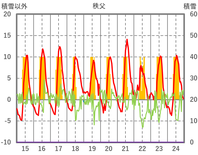 | 日 | 時 | 気温 | 降水 | 風向/風速 | 日照 | 積雪 | 降雪 |