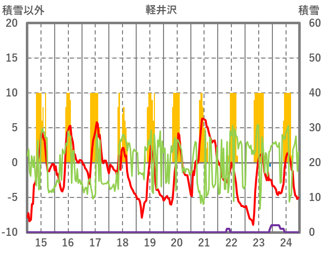| 日 | 時 | 気温 | 降水 | 風向/風速 | 日照 | 積雪 | 降雪 |