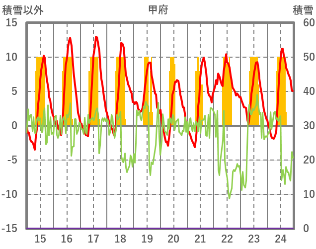| 日 | 時 | 気温 | 降水 | 風向/風速 | 日照 | 積雪 | 降雪 |