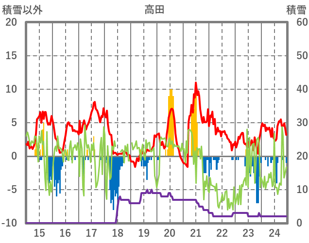 | 日 | 時 | 気温 | 降水 | 風向/風速 | 日照 | 積雪 | 降雪 |