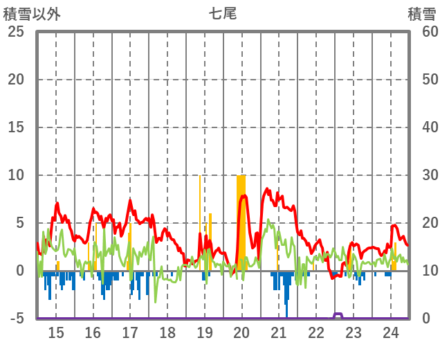 | 日 | 時 | 気温 | 降水 | 風向/風速 | 日照 | 積雪 | 降雪 |