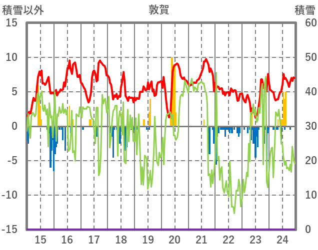 | 日 | 時 | 気温 | 降水 | 風向/風速 | 日照 | 積雪 | 降雪 |