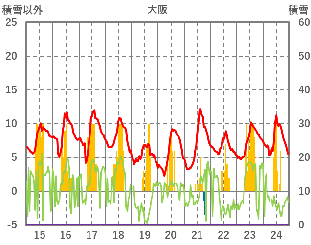 | 日 | 時 | 気温 | 降水 | 風向/風速 | 日照 | 積雪 | 降雪 |