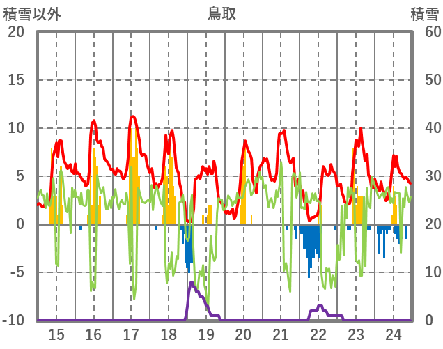| 日 | 時 | 気温 | 降水 | 風向/風速 | 日照 | 積雪 | 降雪 |