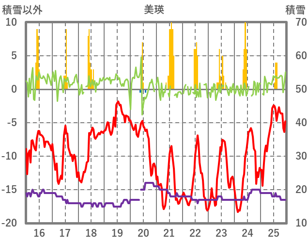 | 日 | 時 | 気温 | 降水 | 風向/風速 | 日照 | 積雪 | 降雪 |