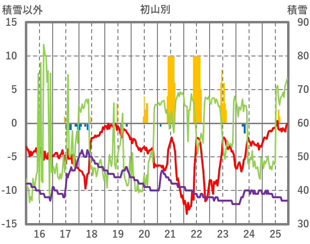| 日 | 時 | 気温 | 降水 | 風向/風速 | 日照 | 積雪 | 降雪 |
