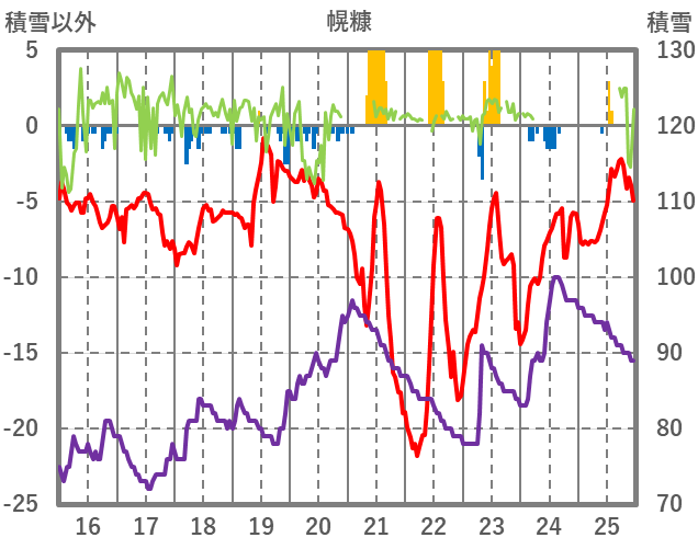 | 日 | 時 | 気温 | 降水 | 風向/風速 | 日照 | 積雪 | 降雪 |