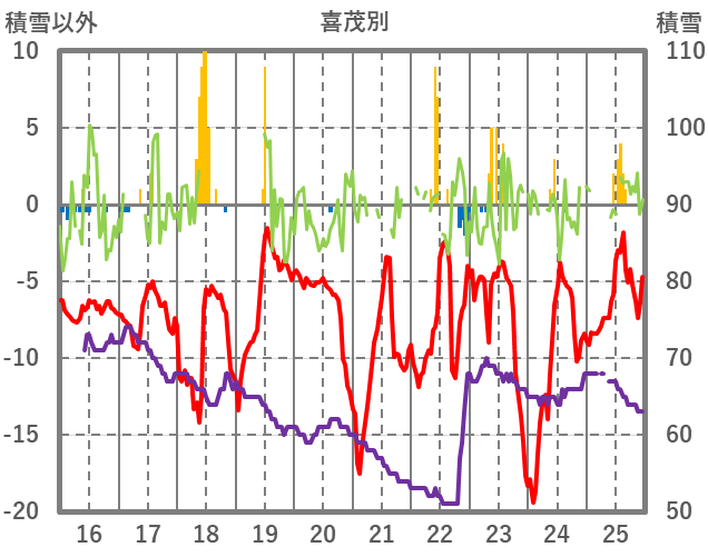 | 日 | 時 | 気温 | 降水 | 風向/風速 | 日照 | 積雪 | 降雪 |