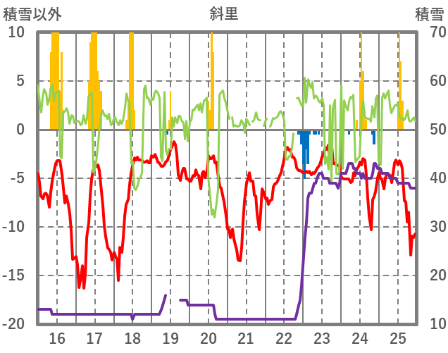 | 日 | 時 | 気温 | 降水 | 風向/風速 | 日照 | 積雪 | 降雪 |